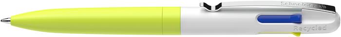 Golyóstoll, 0,5 mm, nyomógombos, négyszínű, SCHNEIDER "Take 4 Neon", sárga-fehér