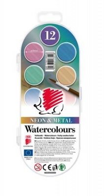 Vízfesték, 12 darabos, 30 mm, ICO "Süni", neon és metál színek
