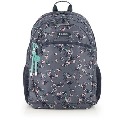 Hátizsák, iskolatáska, cipzáras, GABOL "Secret", szürke, virágmintás